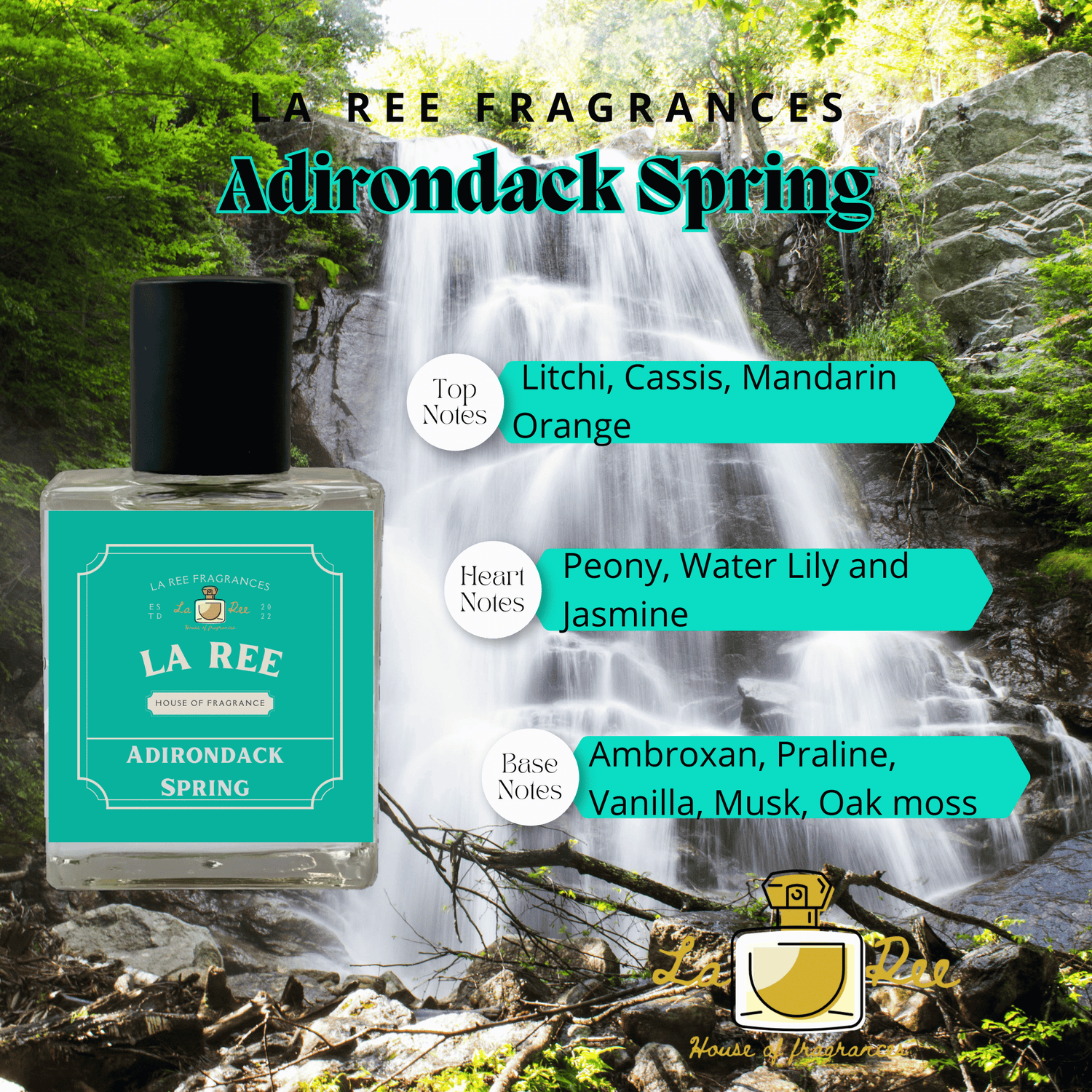 Breathe in the beauty of blooming days and open skies with Adirondack Spring by La Ree Fragrances—a fragrance that feels like a fresh start wrapped in elegance