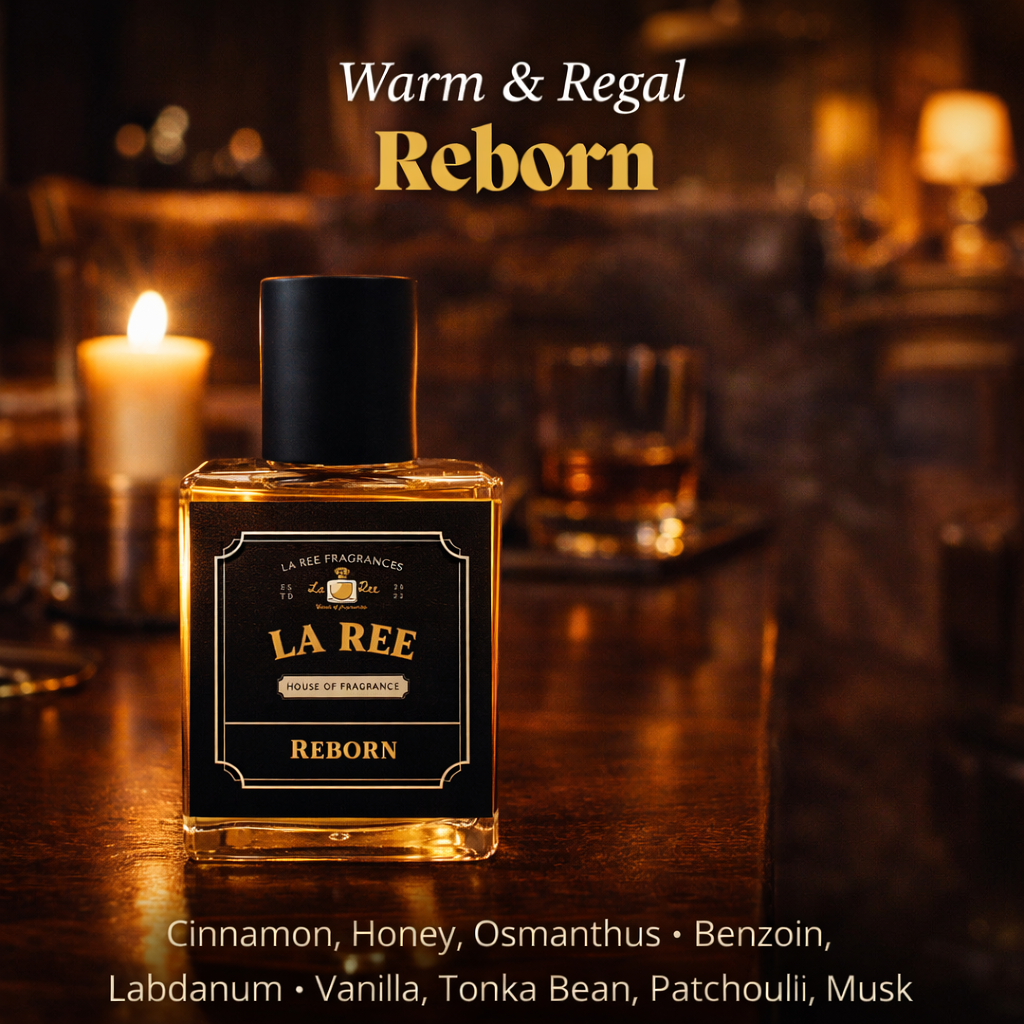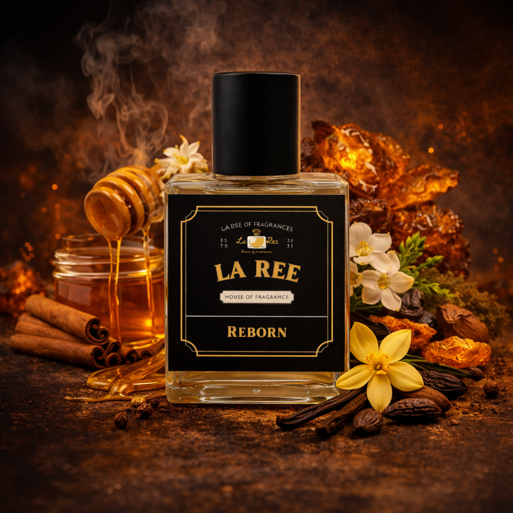 Rise renewed in confidence — Reborn by La Ree Fragrances is warmth, strength, and elegance in every spray.